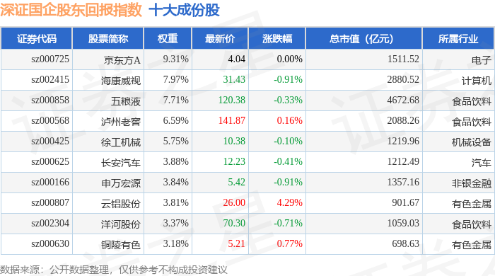 深证国企股东回报(970064)指数十大成份股详情如下: