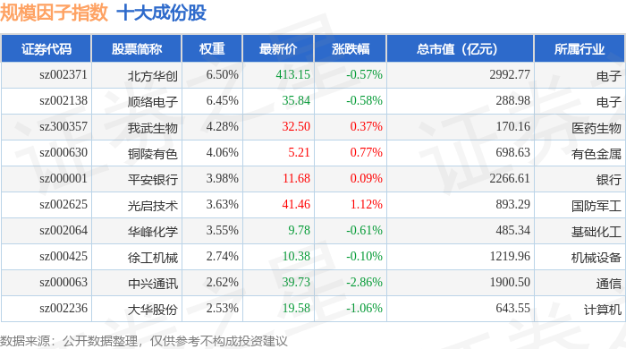 规模因子(980055)指数十大成份股详情如下: