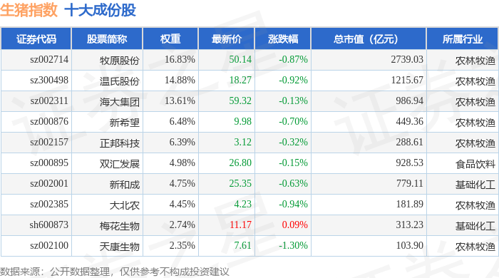 资金流向方面,生猪指数(980073)成份股当日主力资金净流出合计5.19亿元,游资资金净流入合计1.42亿元,散户资金净流入合计3.77亿元。成份股资金流向详情见下表:
