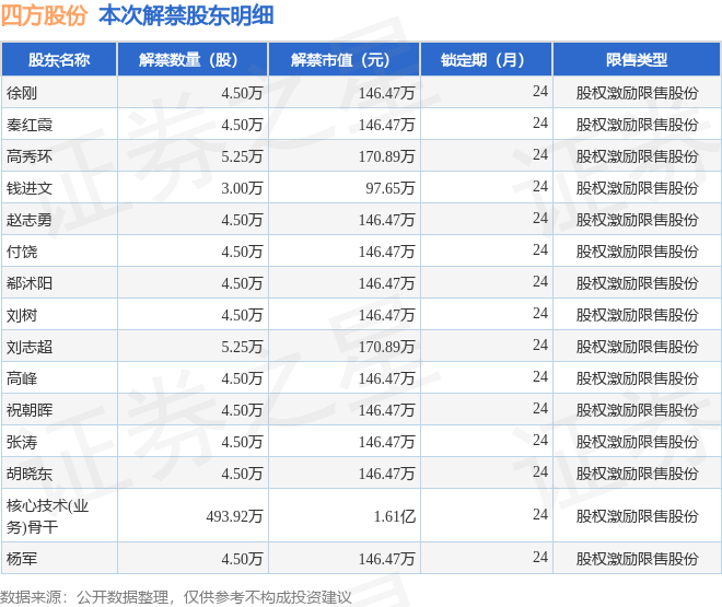 证券之星消息,根据市场公开信息整理,四方股份(601126)于11月13日将有556.92万股限售股份解禁,为公司股权激励限售股份,占公司总股本0.67%。(本次数据根据历史公告整理得出,实际情况以上市公司最新公告为准)最近一年内,该股累计解禁634.42万股,占总股本的0.76%。本次解禁后,公司还有812.31万股限售股份,占总股本0.97%。具体如下图所示: