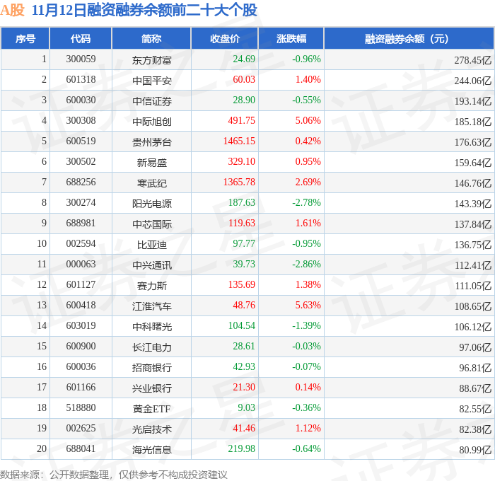 A股融资融券余额前三分别为:东方财富(300059)融资融券余额278.45亿元、中国平安(601318)融资融券余额244.06亿元、中信证券(600030)融资融券余额193.14亿元,前20具体见下表: