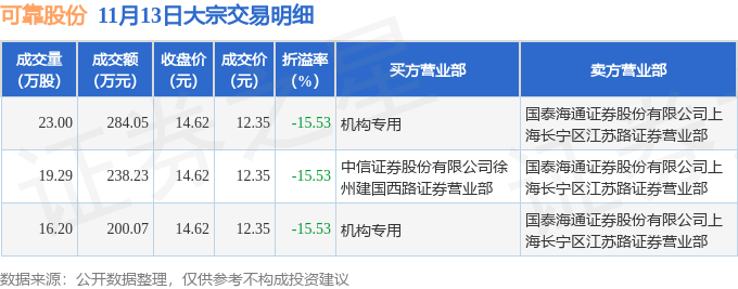 证券之星消息,11月13日可靠股份发生大宗交易,交易数据如下: