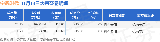 证券之星消息,11月13日宁德时代发生大宗交易,交易数据如下:
