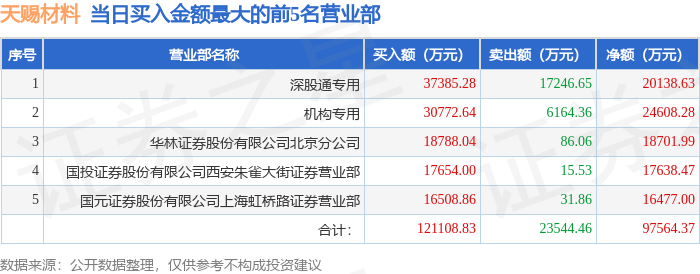 从龙虎榜公布的当日买卖数据来看,机构合计净买入2.38亿元,北向资金合计净买入2.01亿元。朱雀大街、虹桥路徐晓等知名游资榜上有名。(知名游资朱雀大街一般指国投证券股份有限公司西安朱雀大街证券营业部席位、知名游资虹桥路徐晓一般指国元证券股份有限公司上海虹桥路证券营业部席位,根据市场资料整理,仅供参考)
