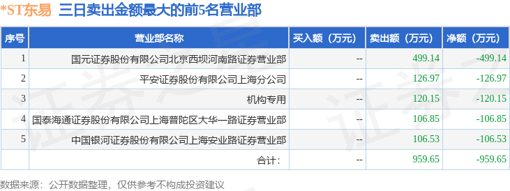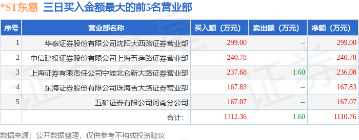 证券之星消息,沪深交易所2025年11月13日公布的交易公开信息显示,*ST东易(002713)因连续三个交易日内,涨幅偏离值累计达到12%的ST证券、*ST证券和未完成股改证券,严重异常期间4次出现正向异常波动的证券登上龙虎榜。此次是近5个交易日内第2次上榜。
