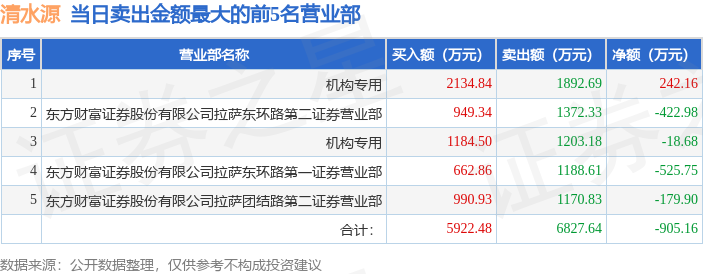 证券之星消息,沪深交易所2025年11月13日公布的交易公开信息显示,清水源(300437)因日换手率达到30%的前5只证券登上龙虎榜。此次是近5个交易日内第5次上榜。