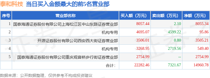 从龙虎榜公布的三日买卖数据来看,机构合计净买入2721.28万元。上海中山东路等知名游资榜上有名。(知名游资上海中山东路一般指国泰海通证券股份有限公司上海松江区中山东路证券营业部席位,根据市场资料整理,仅供参考)
