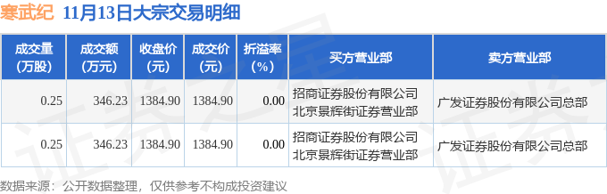 证券之星消息,11月13日寒武纪发生大宗交易,交易数据如下: