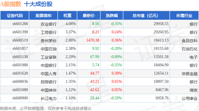 A股指数(000002)十大成份股详情如下: