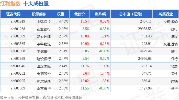 红利指数(000015)十大成份股详情如下: