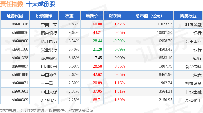 责任指数(000048)十大成份股详情如下: