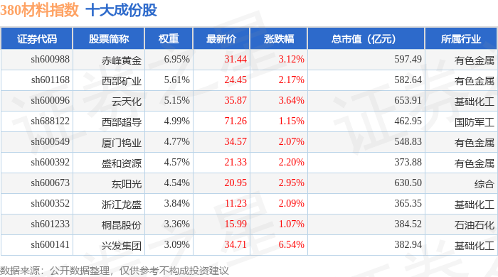 380材料(000105)指数十大成份股详情如下: