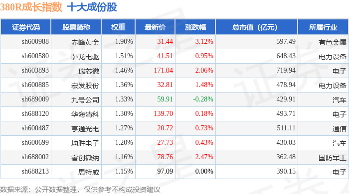 证券之星消息,11月13日,380R成长(000119)指数报收于4297.76点,涨1.16%,成交1361.33亿元,换手率2.15%。当日该指数成份股中,上涨的有212家,五矿新能以12.71%的涨幅领涨,下跌的有65家,金晶科技以5.76%的跌幅领跌。