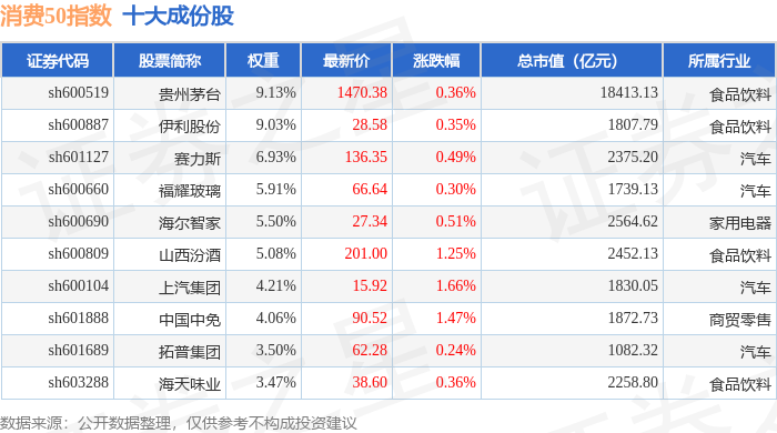 资金流向方面,消费50(000126)指数成份股当日主力资金净流出合计13.56亿元,游资资金净流入合计6.03亿元,散户资金净流入合计7.53亿元。成份股资金流向详情见下表: