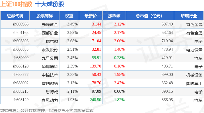 证券之星消息,11月13日,上证100(000132)指数报收于5997.21点,涨0.77%,成交397.56亿元,换手率1.55%。当日该指数成份股中,上涨的有66家,豫光金铅以7.54%的涨幅领涨,下跌的有31家,大参林以2.89%的跌幅领跌。