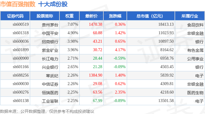 证券之星消息,11月13日,市值百强(000155)指数报收于3348.96点,涨0.97%,成交2249.93亿元,换手率0.43%。当日该指数成份股中,上涨的有67家,兆易创新以8.59%的涨幅领涨,下跌的有27家,中国海油以2.1%的跌幅领跌。