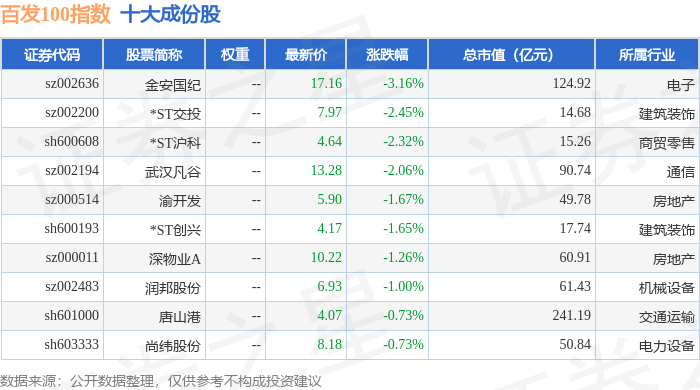 百发100(000851)指数十大成份股详情如下:
