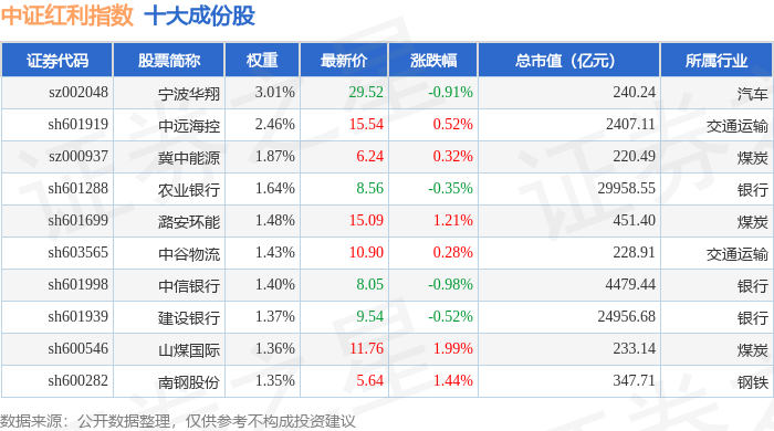 资金流向方面,中证红利(000922)指数成份股当日主力资金净流出合计11.51亿元,游资资金净流入合计9.63亿元,散户资金净流入合计1.87亿元。成份股资金流向详情见下表: