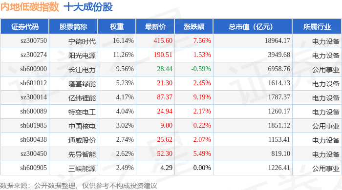 内地低碳(000977)指数十大成份股详情如下: