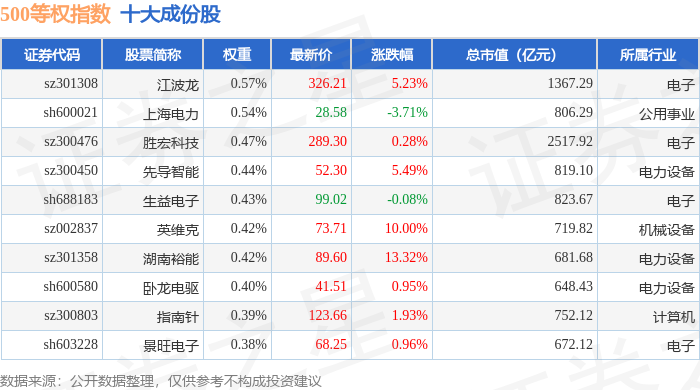 证券之星消息,11月13日,500等权(000982)指数报收于9024.76点,涨1.45%,成交3395.96亿元,换手率1.76%。当日该指数成份股中,上涨的有376家,天华新能以19.15%的涨幅领涨,下跌的有108家,乖宝宠物以5.0%的跌幅领跌。