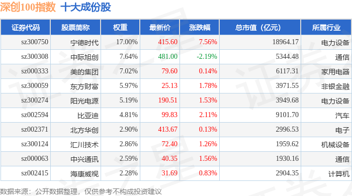 深创100(399088)指数十大成份股详情如下: