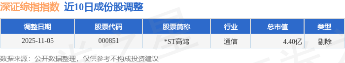 近10日内深证综指(399106)指数成份股做了调整,剔除了1只股票。