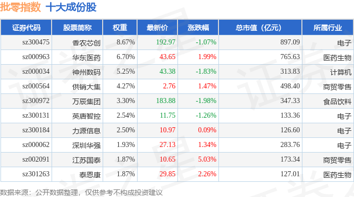 资金流向方面,批零指数(399236)成份股当日主力资金净流出合计12.83亿元,游资资金净流出合计2731.34万元,散户资金净流入合计13.1亿元。成份股资金流向详情见下表: