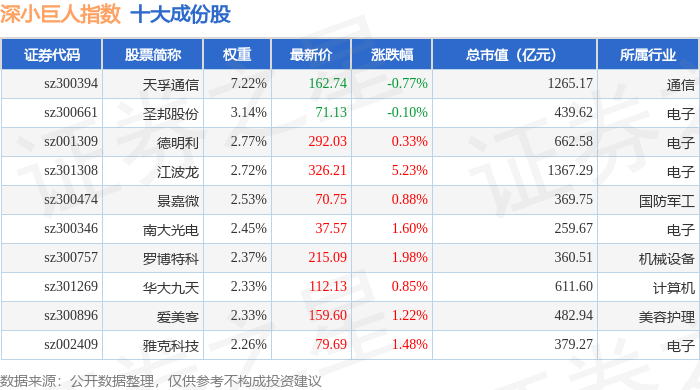 深小巨人(399268)指数十大成份股详情如下: