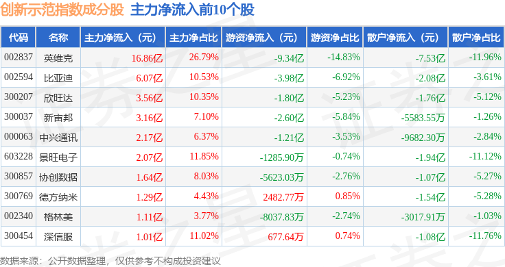 资金流向方面,创新示范(399351)指数成份股当日主力资金净流入合计21.37亿元,游资资金净流出合计23.21亿元,散户资金净流入合计1.85亿元。成份股资金流向详情见下表:
