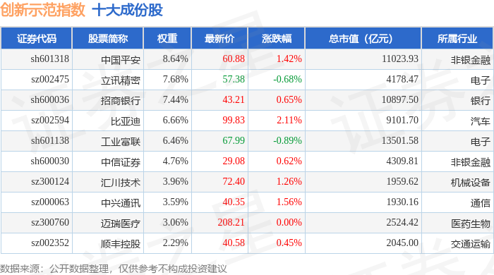 证券之星消息,11月13日,创新示范(399351)指数报收于10804.7点,涨1.07%,成交1245.48亿元,换手率1.47%。当日该指数成份股中,上涨的有76家,新宙邦以17.49%的涨幅领涨,下跌的有22家,信维通信以3.7%的跌幅领跌。