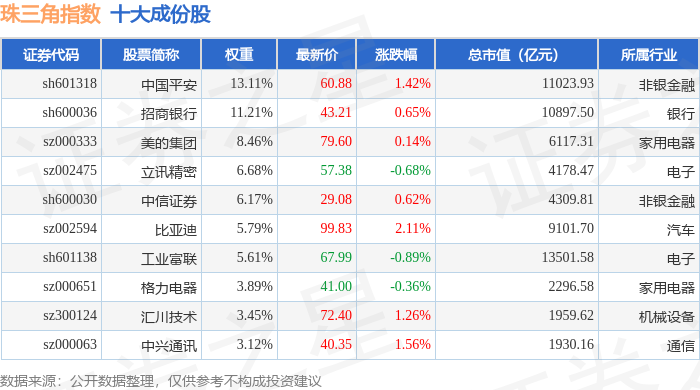 珠三角(399356)指数十大成份股详情如下: