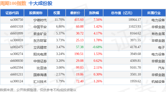 证券之星消息,11月13日,周期100(399402)指数报收于3854.05点,涨2.37%,成交2162.99亿元,换手率0.83%。当日该指数成份股中,上涨的有85家,天齐锂业以9.98%的涨幅领涨,下跌的有14家,中国海油以2.1%的跌幅领跌。