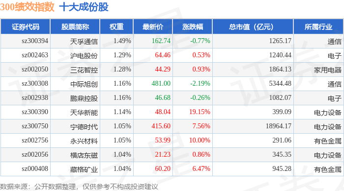 证券之星消息,11月13日,300绩效(399657)指数报收于7221.73点,涨1.86%,成交3935.73亿元,换手率1.46%。当日该指数成份股中,上涨的有239家,天华新能以19.15%的涨幅领涨,下跌的有57家,乖宝宠物以5.0%的跌幅领跌。
