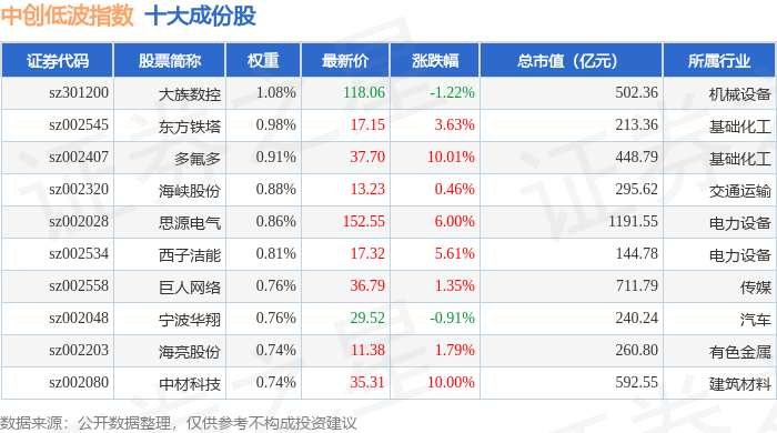 中创低波(399665)指数十大成份股详情如下: