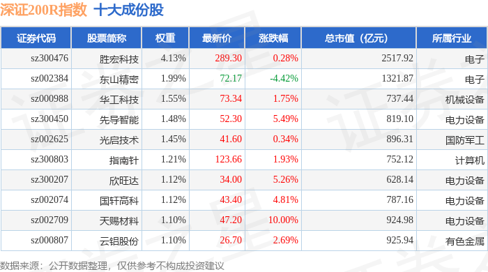证券之星消息,11月13日,深证200R(399679)指数报收于6242.55点,涨2.08%,成交1909.99亿元,换手率1.99%。当日该指数成份股中,上涨的有168家,天华新能以19.15%的涨幅领涨,下跌的有29家,乖宝宠物以5.0%的跌幅领跌。