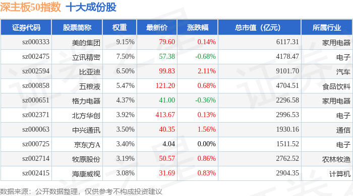 证券之星消息,11月13日,深主板50(399750)指数报收于9116.34点,涨0.66%,成交653.38亿元,换手率0.89%。当日该指数成份股中,上涨的有33家,盐湖股份以7.95%的涨幅领涨,下跌的有16家,招商公路以2.69%的跌幅领跌。