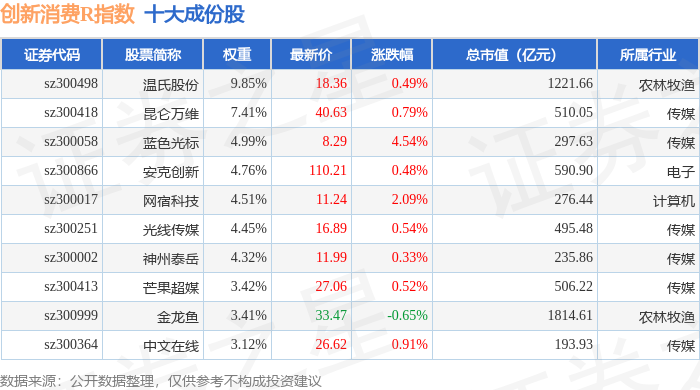 证券之星消息,11月13日,创新消费R(470041)指数报收于2689.69点,涨0.89%,成交188.19亿元,换手率2.85%。当日该指数成份股中,上涨的有43家,值得买以20.0%的涨幅领涨,下跌的有6家,乖宝宠物以5.0%的跌幅领跌。