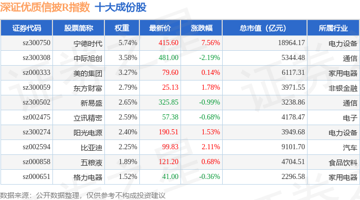 深证优质信披R(470065)指数十大成份股详情如下: