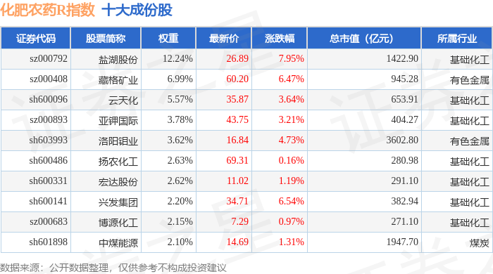资金流向方面,化肥农药R(480035)指数成份股当日主力资金净流入合计16.05亿元,游资资金净流出合计3232.58万元,散户资金净流出合计15.73亿元。成份股资金流向详情见下表: