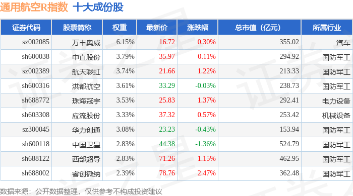 通用航空R(480076)指数十大成份股详情如下: