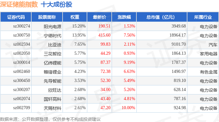 资金流向方面,深证储能(970036)指数成份股当日主力资金净流入合计122.84亿元,游资资金净流出合计69.22亿元,散户资金净流出合计53.62亿元。成份股资金流向详情见下表: