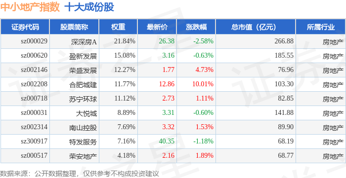 近10日内中小地产(971002)指数成份股做了调整,新纳入了1只股票。