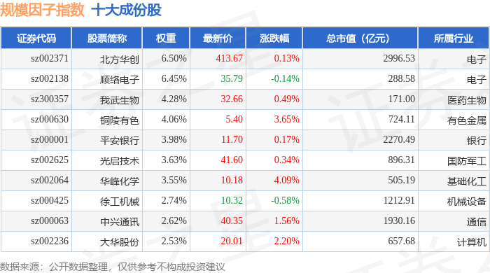 证券之星消息,11月13日,规模因子(980055)指数报收于1970.49点,涨1.33%,成交432.68亿元,换手率1.41%。当日该指数成份股中,上涨的有40家,上能电气以20.0%的涨幅领涨,下跌的有10家,美亚光电以1.56%的跌幅领跌。