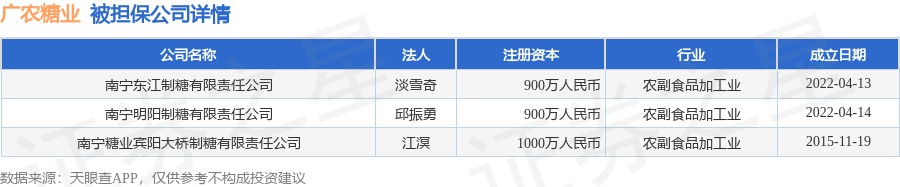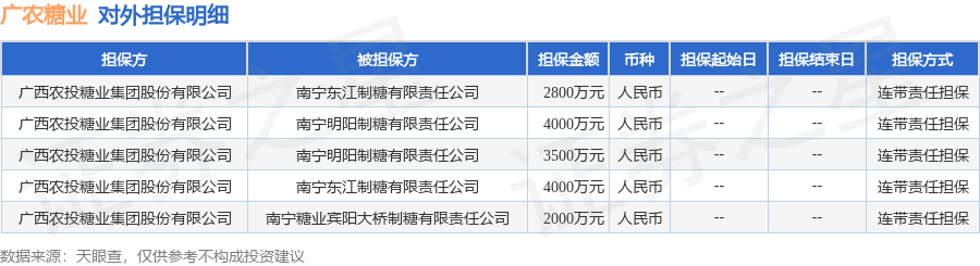 广农糖业11月12日披露5笔对外担保,被担保公司3家。对外担保明细如下表: