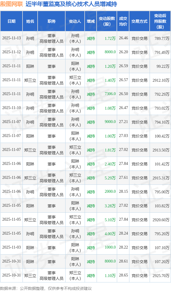 殷图网联近半年内的董监高及核心技术人员增减持详情如下: