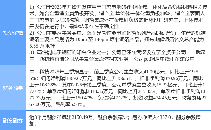 该股为铜箔/覆铜板,PET复合铜箔,固态电池概念热股,当日铜箔/覆铜板概念上涨0.62%,PET复合铜箔概念上涨0.55%。