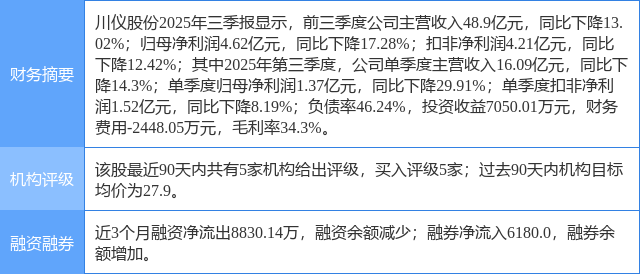 今日川仪股份(603100)涨8.18%,收盘报25.25元。