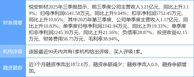 今日悦安新材(688786)涨5.36%,收盘报29.51元。