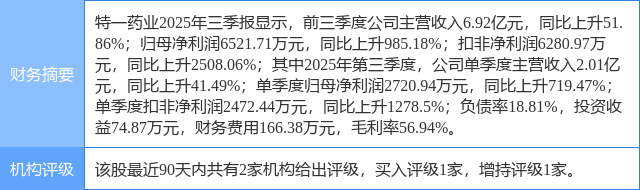 今日特一药业(002728)涨9.98%,收盘报15.21元。