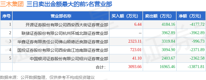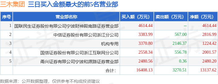 证券之星消息,沪深交易所2025年11月14日公布的交易公开信息显示,三木集团(000632)因连续三个交易日内,涨幅偏离值累计达到20%的证券登上龙虎榜。此次是近5个交易日内第3次上榜。